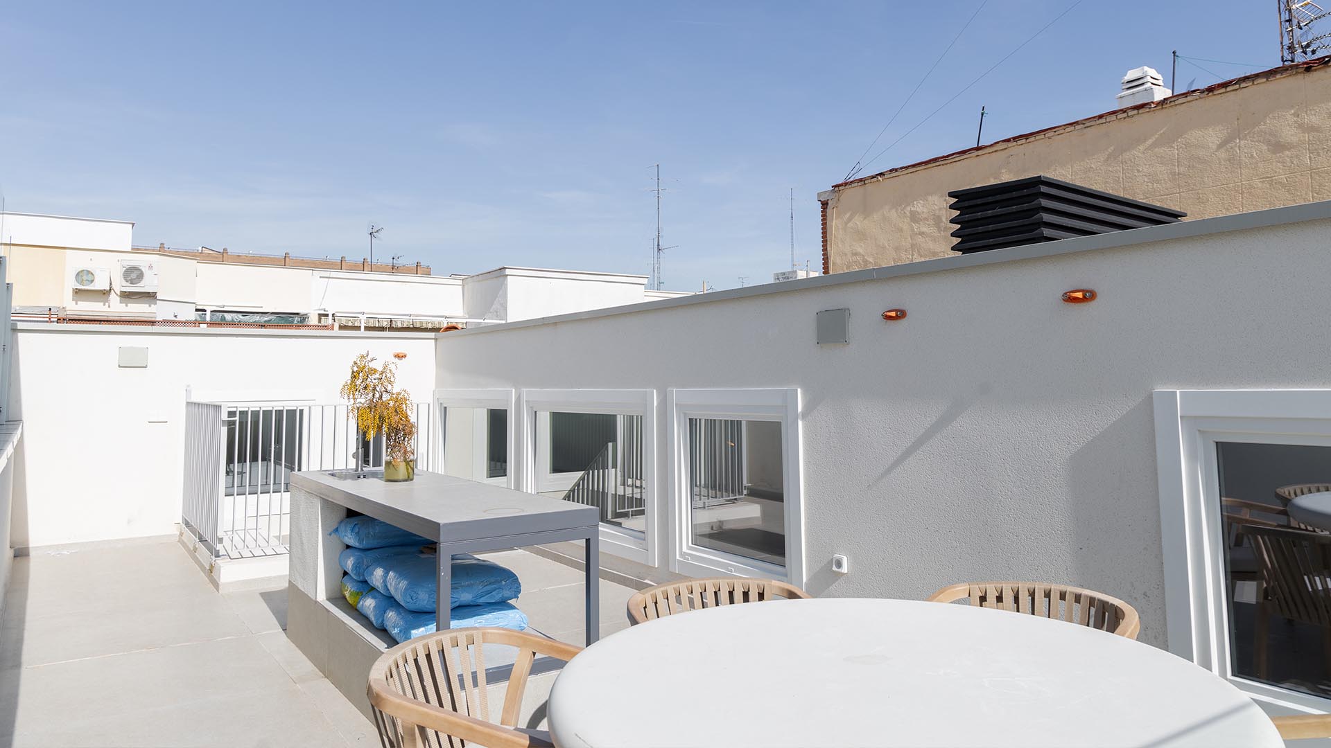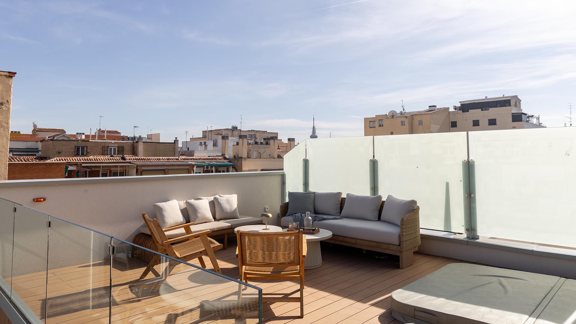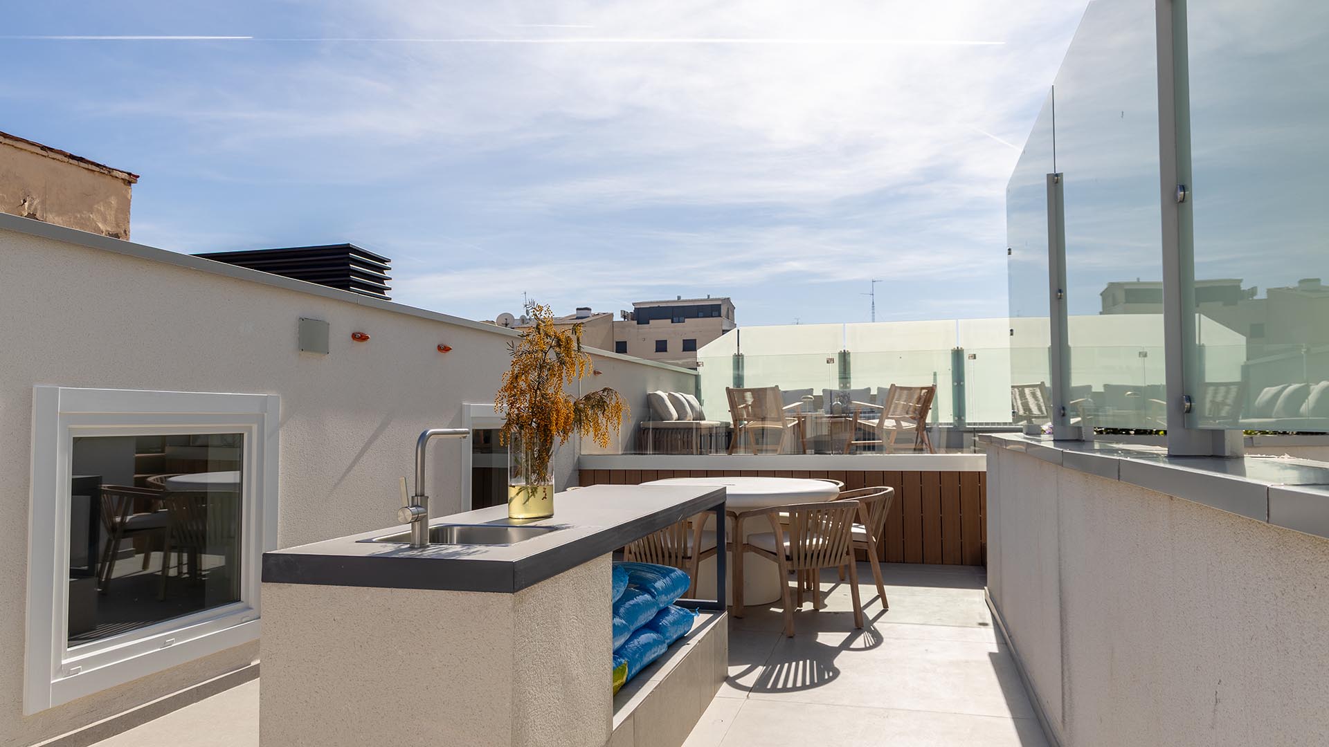 The exterior of the penthouse is a true oasis of tranquility, with a stunning 85m² private terrace with jacuzzi designed to make the most of the outdoors. Equipped with a Jacuzzi and an exclusive solarium area, it is the perfect space to relax and unwind.